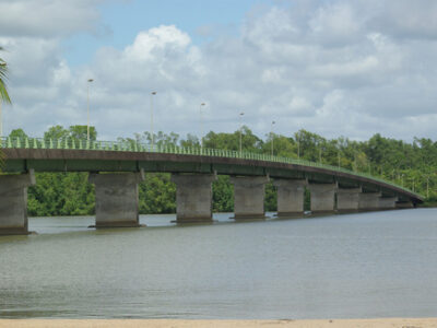 l’embouchure de la Crique Gabrielle donne sur le Mahury, au niveau du pont de Roura.